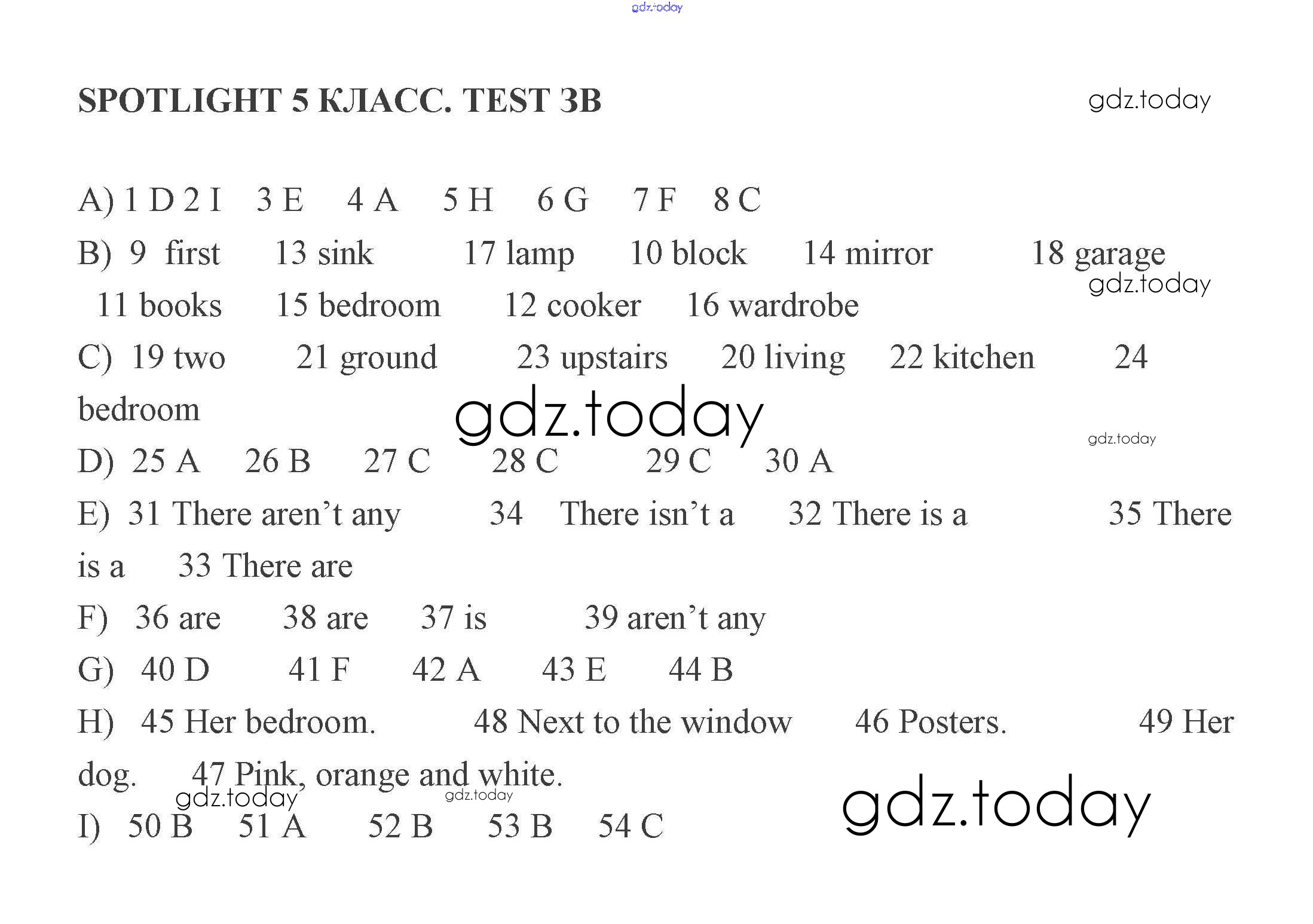 На страницах сайта gdz.today вы найдете учебный и вспомогательный материал, направленный на улучшения знаний школьной программы. ГДЗ - онлайн мир знаний Решение к тесту 3 B Контрольным заданиям по Английскому языку для 5 класса Ваулина, Дули Просвещение Spotlight 2008