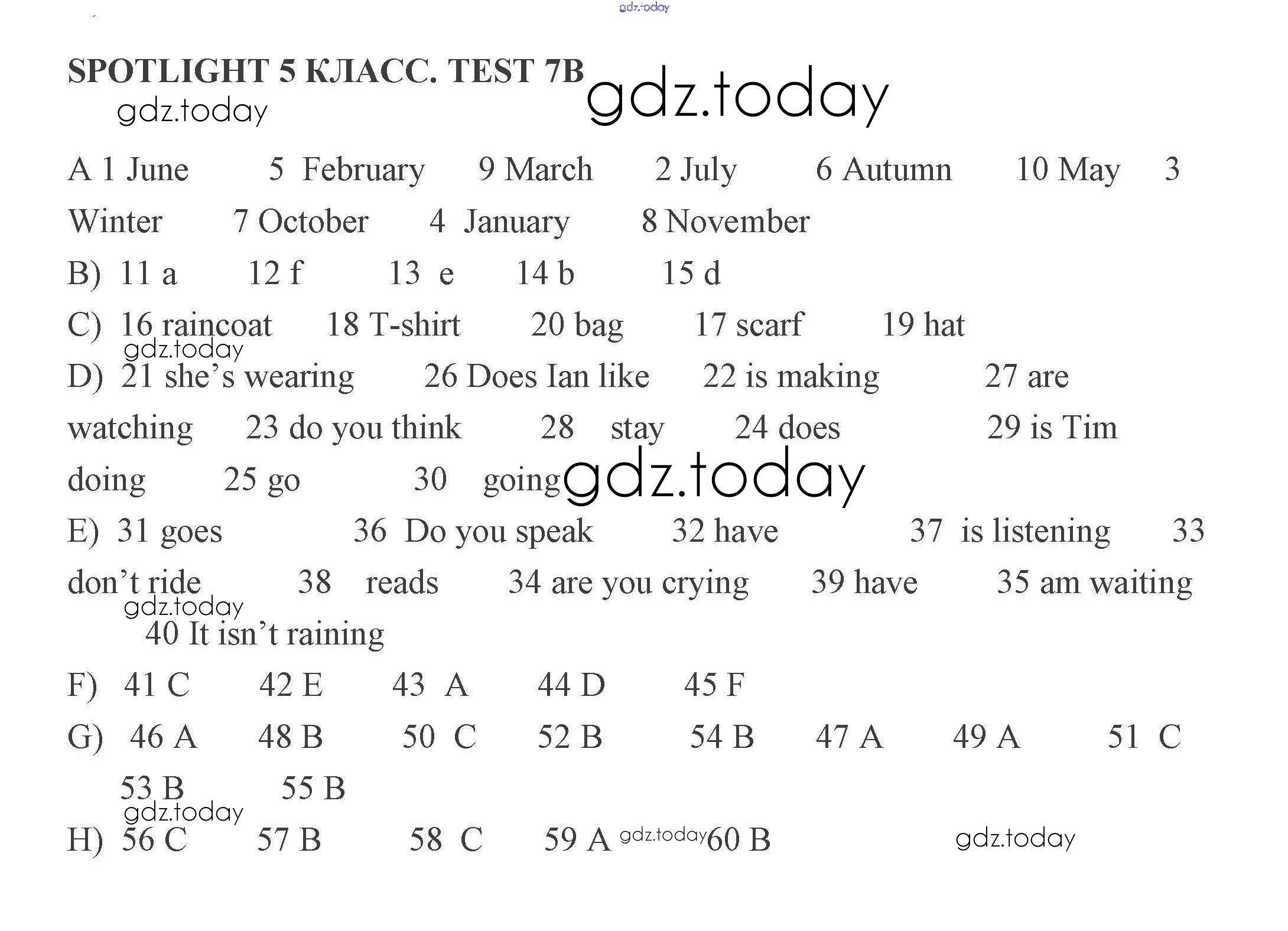 Ответы к Решение к тест 7 B Контрольным заданиям по Английскому языку для 5 класса Ваулина, Дули Просвещение Spotlight 2008