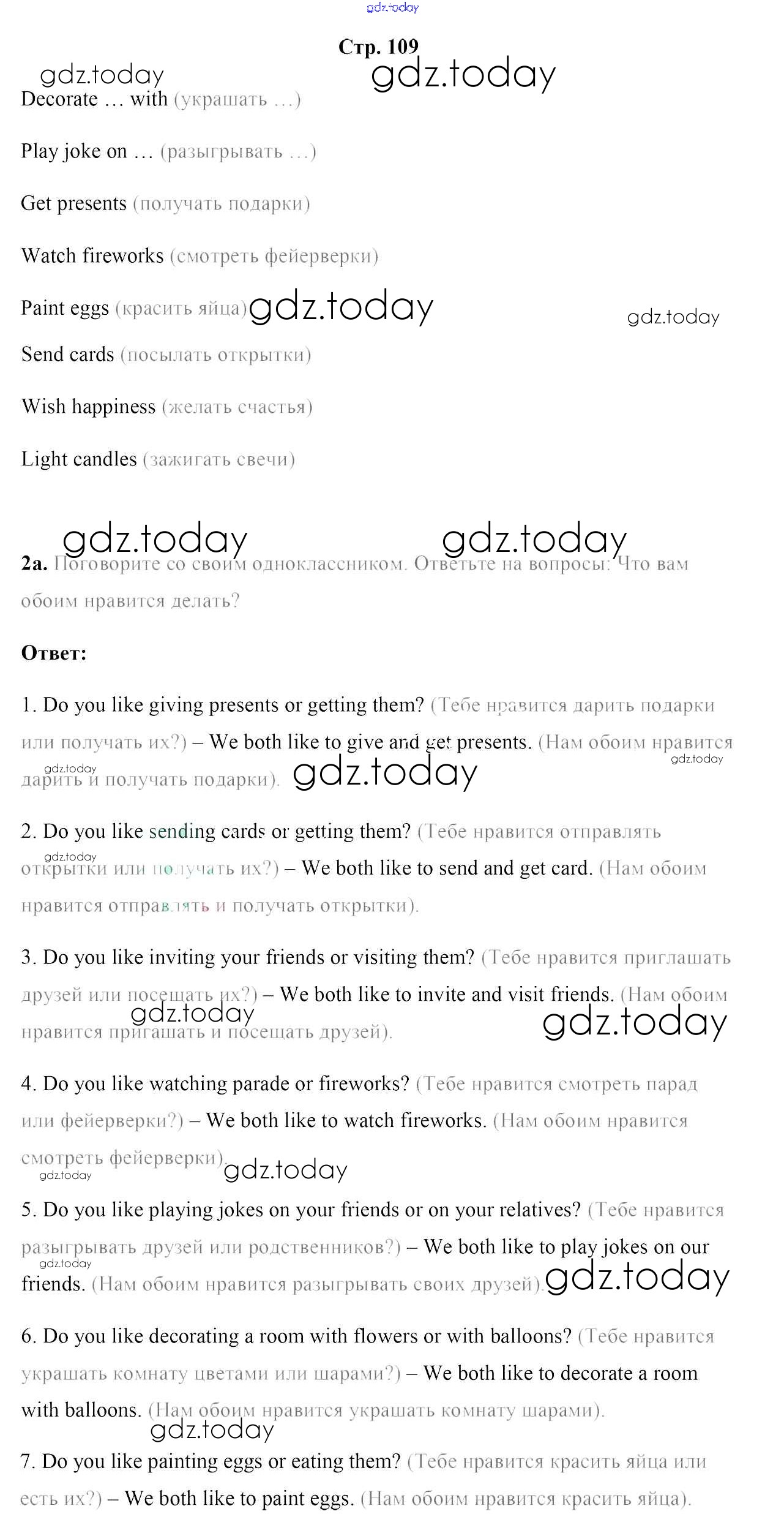 На страницах сайта gdz.today вы найдете учебный и вспомогательный материал, направленный на улучшения знаний школьной программы. ГДЗ - онлайн мир знаний Решение к части 1. Страницы 109 Учебнику по Английскому языку для 5 класса Лапицкая, Калишевич Народная асвета 2020