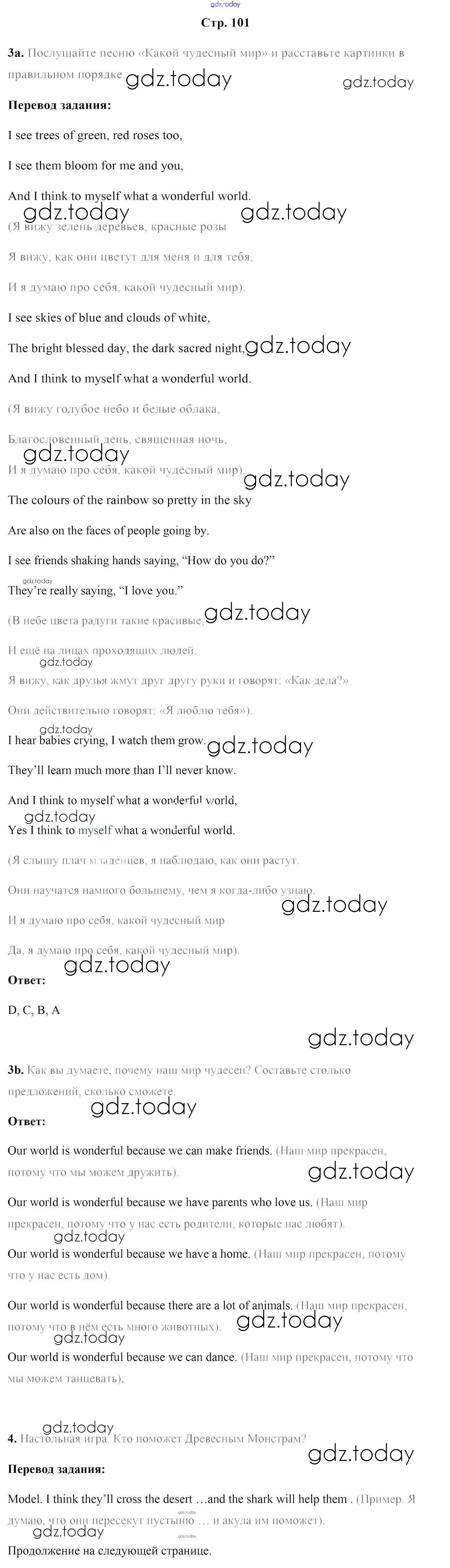 На страницах сайта gdz.today вы найдете учебный и вспомогательный материал, направленный на улучшения знаний школьной программы. ГДЗ - онлайн мир знаний Решение к части 2. Страницы 101 Учебнику по Английскому языку для 5 класса Лапицкая, Калишевич Народная асвета 2020