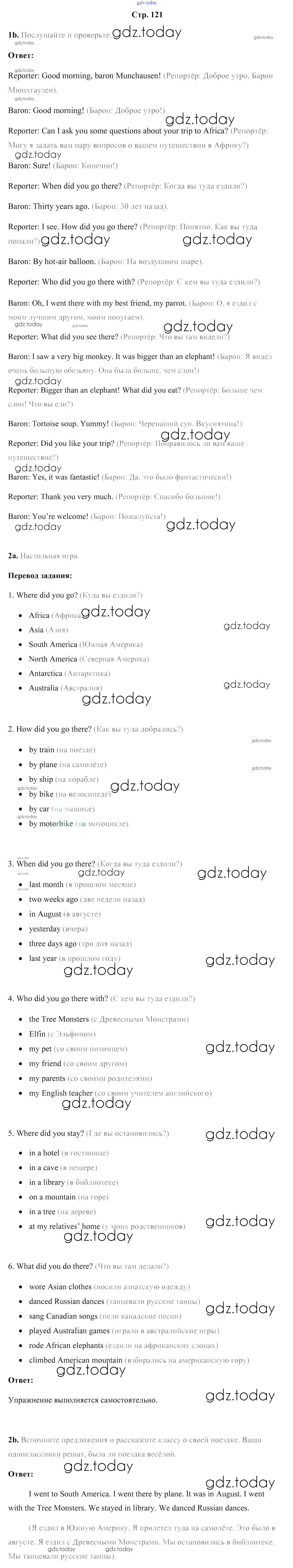На страницах сайта gdz.today вы найдете учебный и вспомогательный материал, направленный на улучшения знаний школьной программы. ГДЗ - онлайн мир знаний Решение к части 2. Страницы 121 Учебнику по Английскому языку для 5 класса Лапицкая, Калишевич Народная асвета 2020