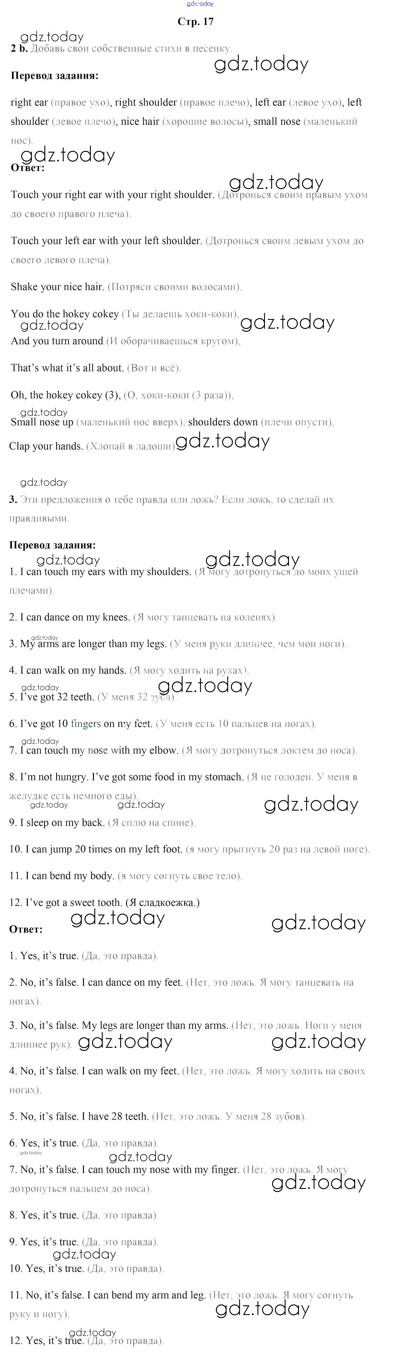 На страницах сайта gdz.today вы найдете учебный и вспомогательный материал, направленный на улучшения знаний школьной программы. ГДЗ - онлайн мир знаний Решение к части 2. Страницы 17 Учебнику по Английскому языку для 5 класса Лапицкая, Калишевич Народная асвета 2020