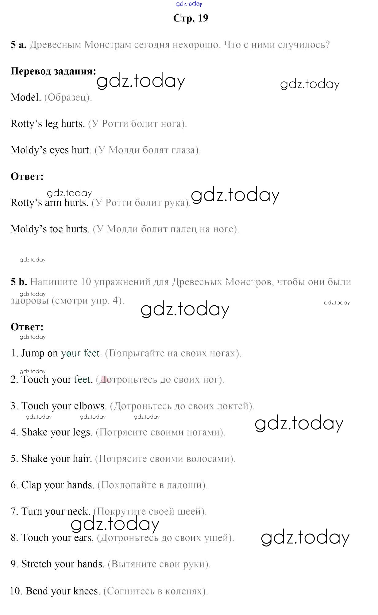 На страницах сайта gdz.today вы найдете учебный и вспомогательный материал, направленный на улучшения знаний школьной программы. ГДЗ - онлайн мир знаний Решение к части 2. Страницы 19 Учебнику по Английскому языку для 5 класса Лапицкая, Калишевич Народная асвета 2020