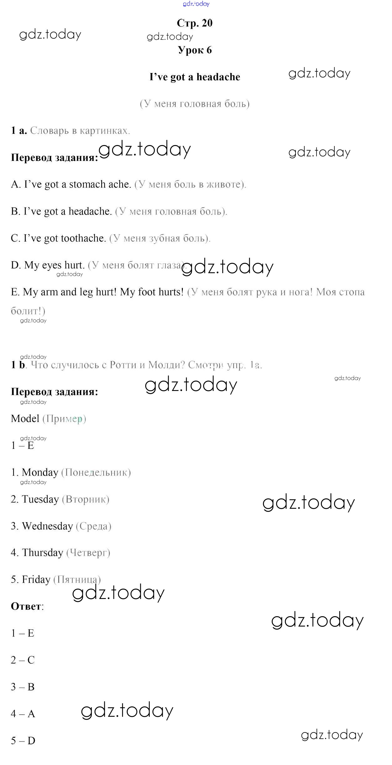 На страницах сайта gdz.today вы найдете учебный и вспомогательный материал, направленный на улучшения знаний школьной программы. ГДЗ - онлайн мир знаний Решение к части 2. Страницы 20 Учебнику по Английскому языку для 5 класса Лапицкая, Калишевич Народная асвета 2020