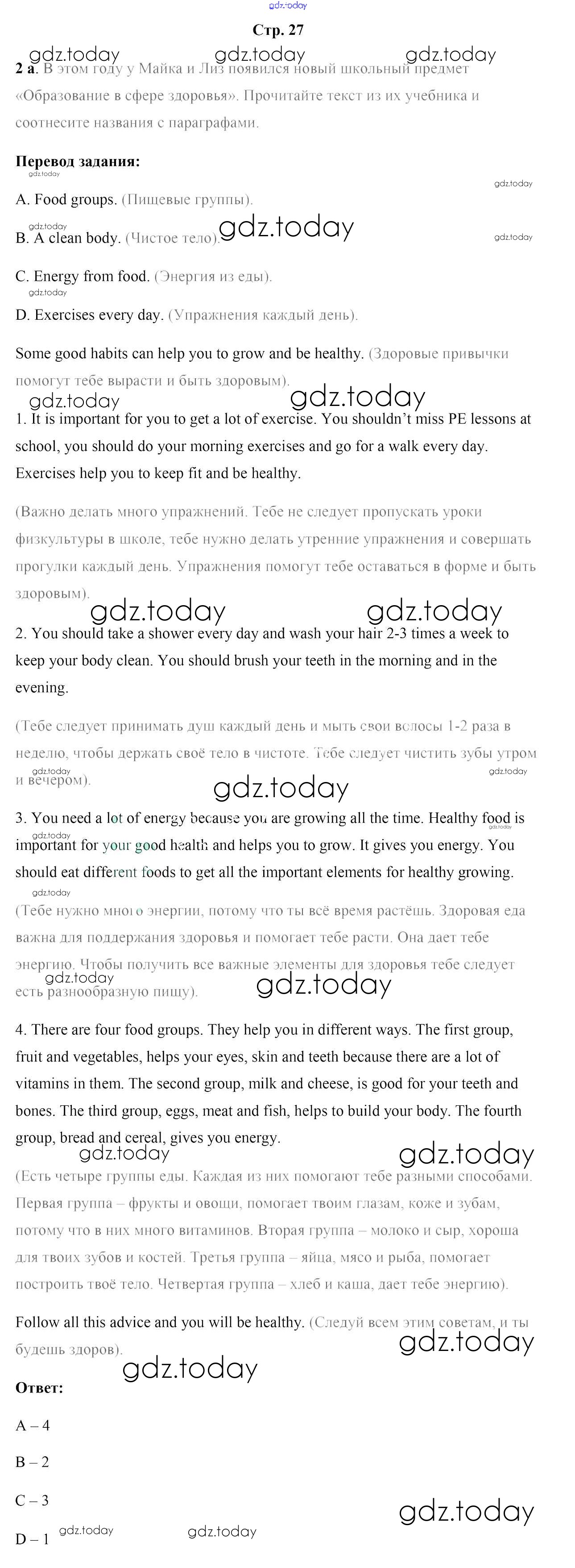 На страницах сайта gdz.today вы найдете учебный и вспомогательный материал, направленный на улучшения знаний школьной программы. ГДЗ - онлайн мир знаний Решение к части 2. Страницы 27 Учебнику по Английскому языку для 5 класса Лапицкая, Калишевич Народная асвета 2020