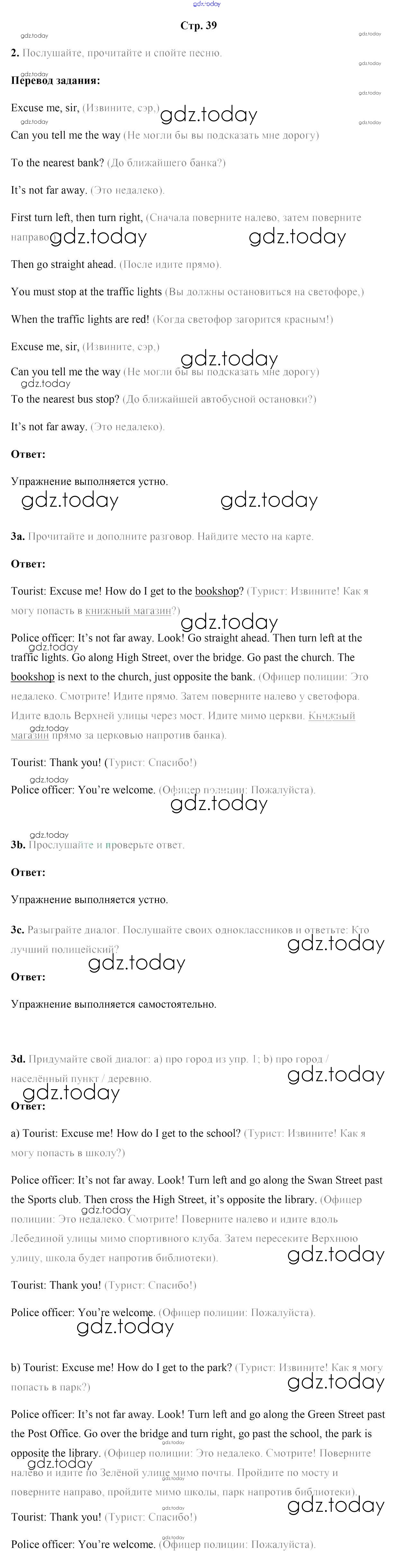 На страницах сайта gdz.today вы найдете учебный и вспомогательный материал, направленный на улучшения знаний школьной программы. ГДЗ - онлайн мир знаний Решение к части 2. Страницы 39 Учебнику по Английскому языку для 5 класса Лапицкая, Калишевич Народная асвета 2020