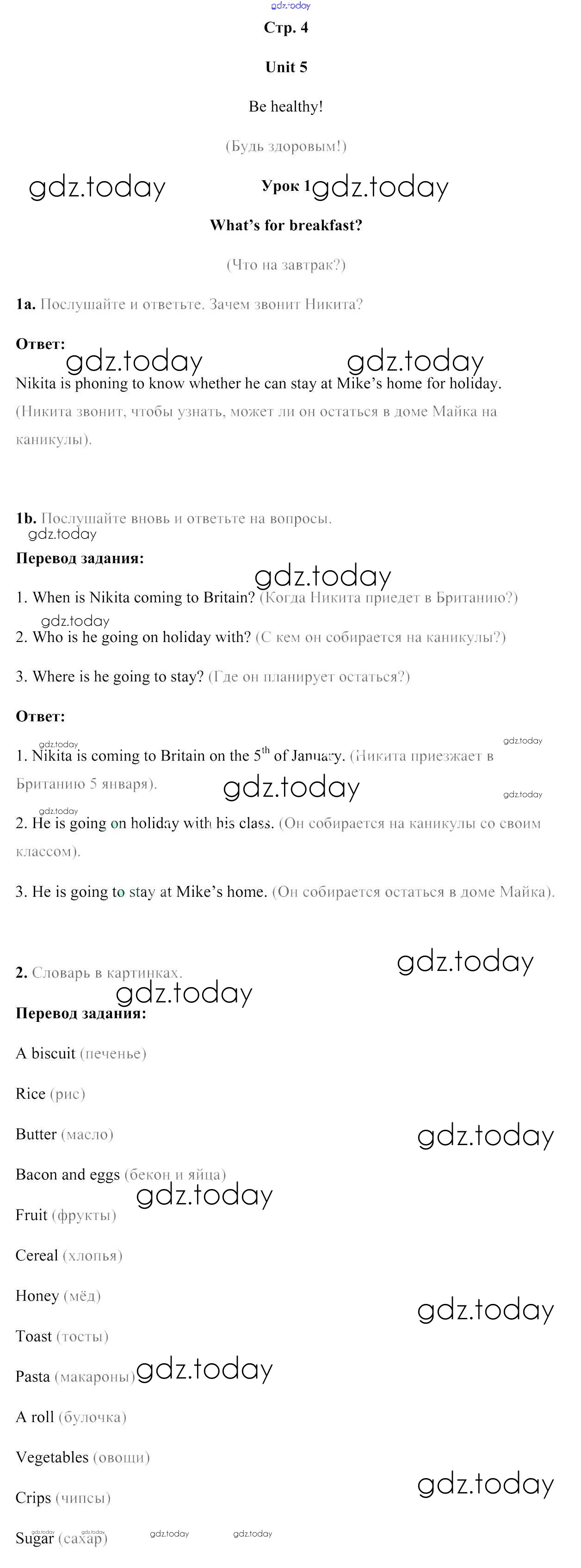 На страницах сайта gdz.today вы найдете учебный и вспомогательный материал, направленный на улучшения знаний школьной программы. ГДЗ - онлайн мир знаний Решение к части 2. Страницы 4 Учебнику по Английскому языку для 5 класса Лапицкая, Калишевич Народная асвета 2020