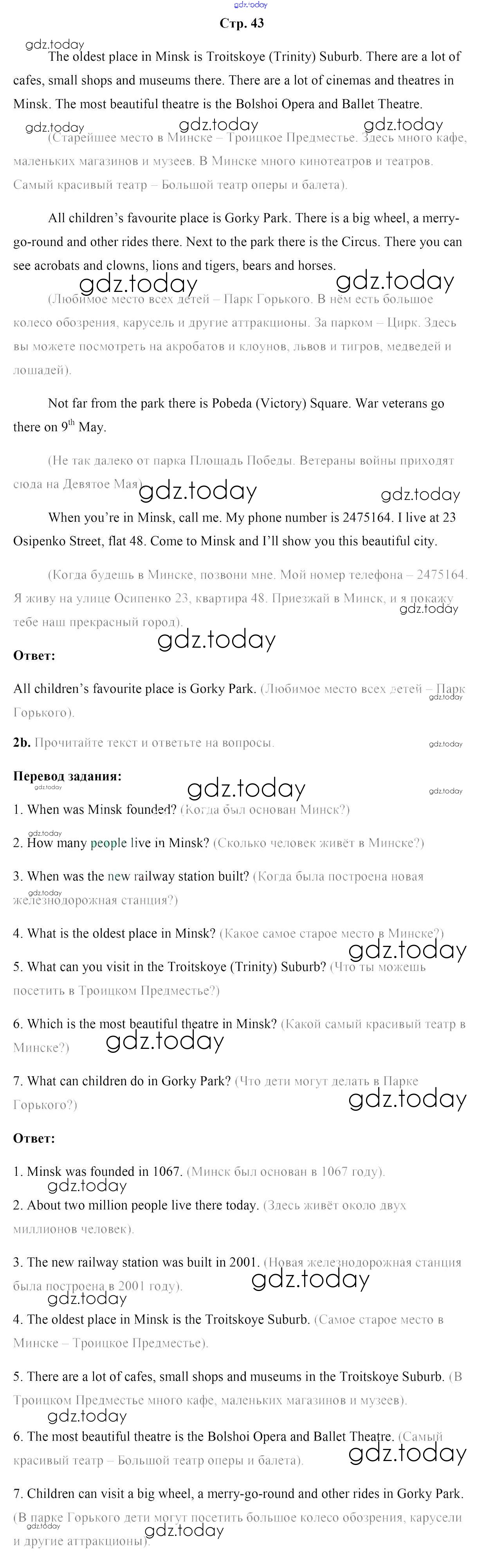 На страницах сайта gdz.today вы найдете учебный и вспомогательный материал, направленный на улучшения знаний школьной программы. ГДЗ - онлайн мир знаний Решение к части 2. Страницы 43 Учебнику по Английскому языку для 5 класса Лапицкая, Калишевич Народная асвета 2020