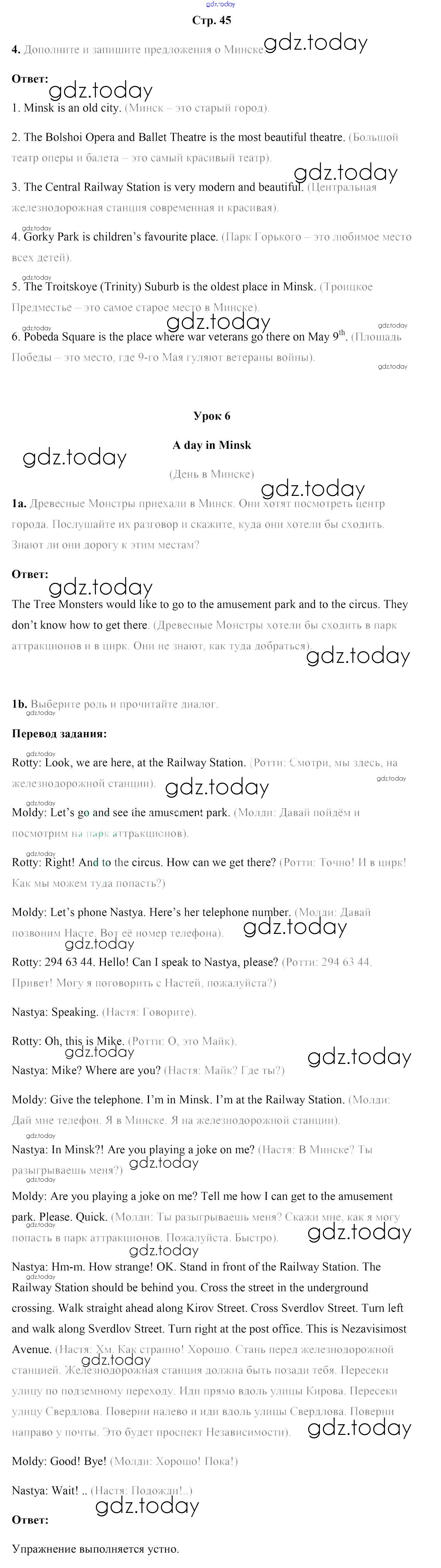 На страницах сайта gdz.today вы найдете учебный и вспомогательный материал, направленный на улучшения знаний школьной программы. ГДЗ - онлайн мир знаний Решение к части 2. Страницы 45 Учебнику по Английскому языку для 5 класса Лапицкая, Калишевич Народная асвета 2020