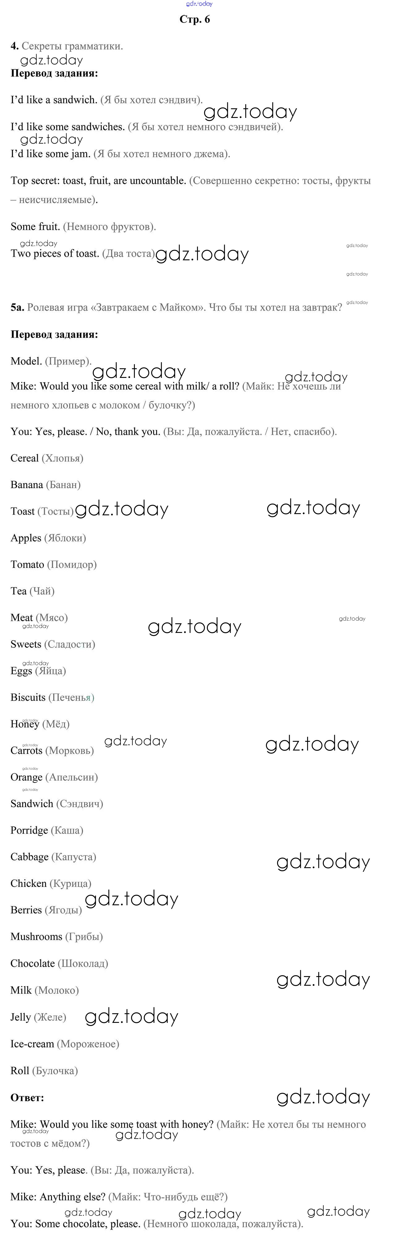 На страницах сайта gdz.today вы найдете учебный и вспомогательный материал, направленный на улучшения знаний школьной программы. ГДЗ - онлайн мир знаний Решение к части 2. Страницы 6 Учебнику по Английскому языку для 5 класса Лапицкая, Калишевич Народная асвета 2020