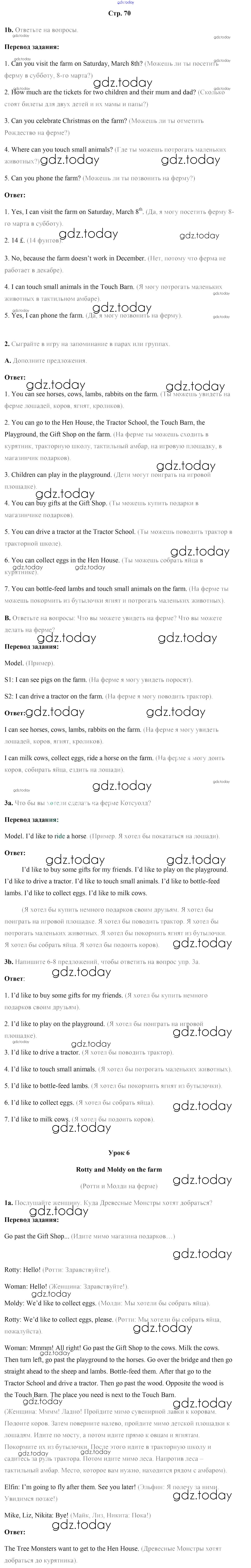 На страницах сайта gdz.today вы найдете учебный и вспомогательный материал, направленный на улучшения знаний школьной программы. ГДЗ - онлайн мир знаний Решение к части 2. Страницы 70 Учебнику по Английскому языку для 5 класса Лапицкая, Калишевич Народная асвета 2020