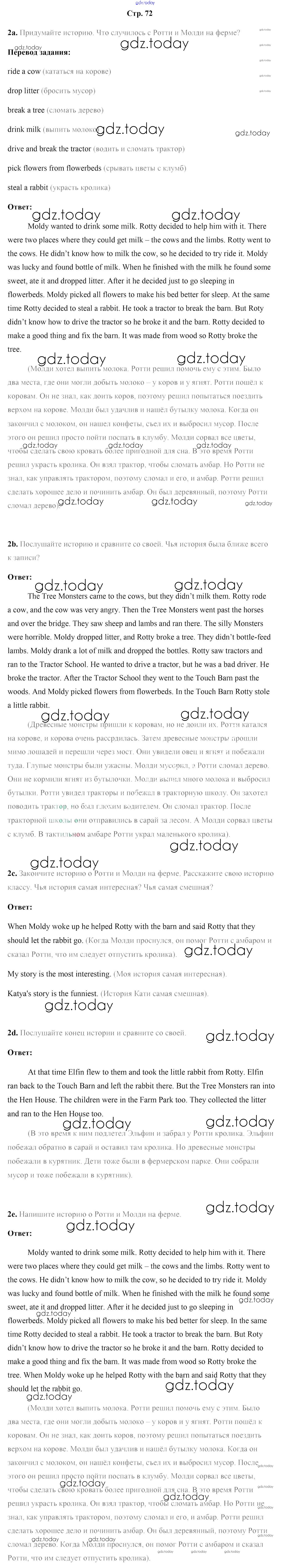 На страницах сайта gdz.today вы найдете учебный и вспомогательный материал, направленный на улучшения знаний школьной программы. ГДЗ - онлайн мир знаний Решение к части 2. Страницы 72 Учебнику по Английскому языку для 5 класса Лапицкая, Калишевич Народная асвета 2020