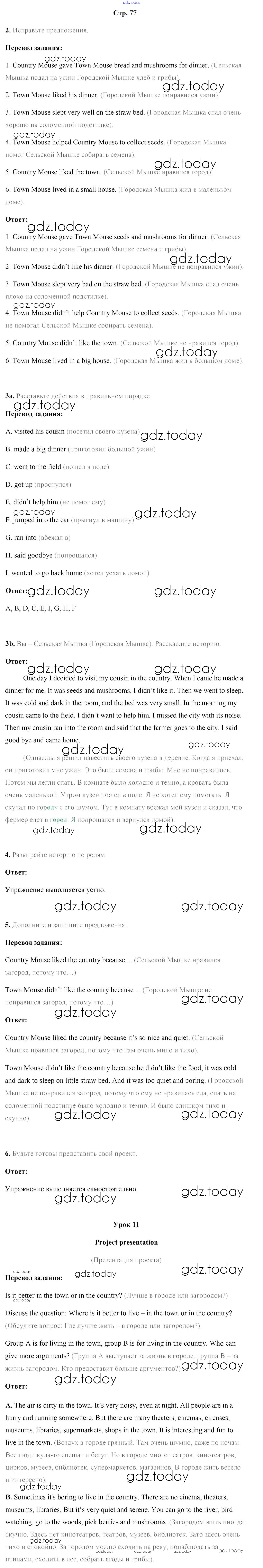 На страницах сайта gdz.today вы найдете учебный и вспомогательный материал, направленный на улучшения знаний школьной программы. ГДЗ - онлайн мир знаний Решение к части 2. Страницы 77 Учебнику по Английскому языку для 5 класса Лапицкая, Калишевич Народная асвета 2020