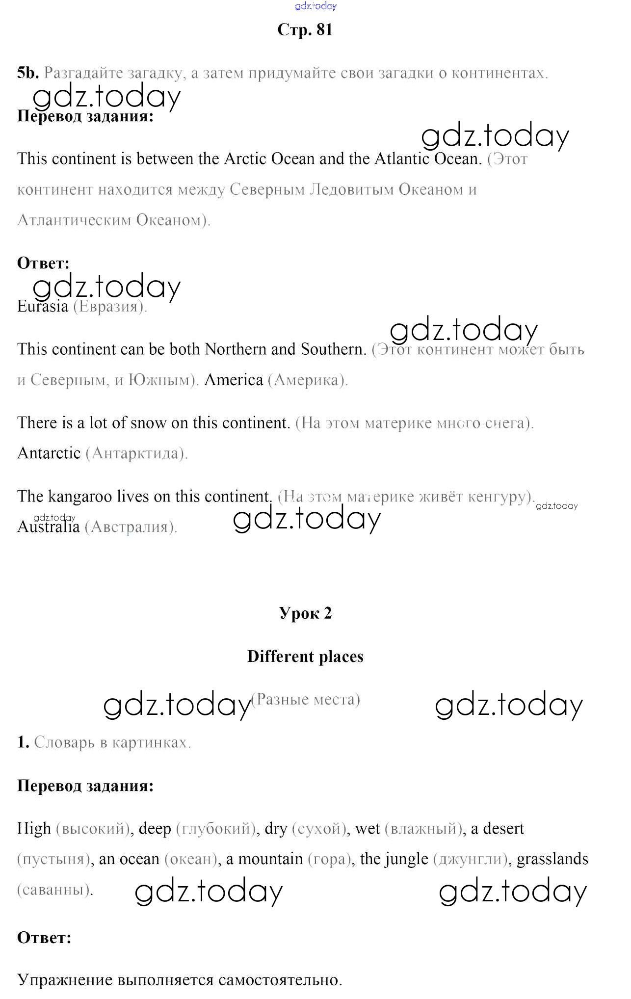 На страницах сайта gdz.today вы найдете учебный и вспомогательный материал, направленный на улучшения знаний школьной программы. ГДЗ - онлайн мир знаний Решение к части 2. Страницы 81 Учебнику по Английскому языку для 5 класса Лапицкая, Калишевич Народная асвета 2020