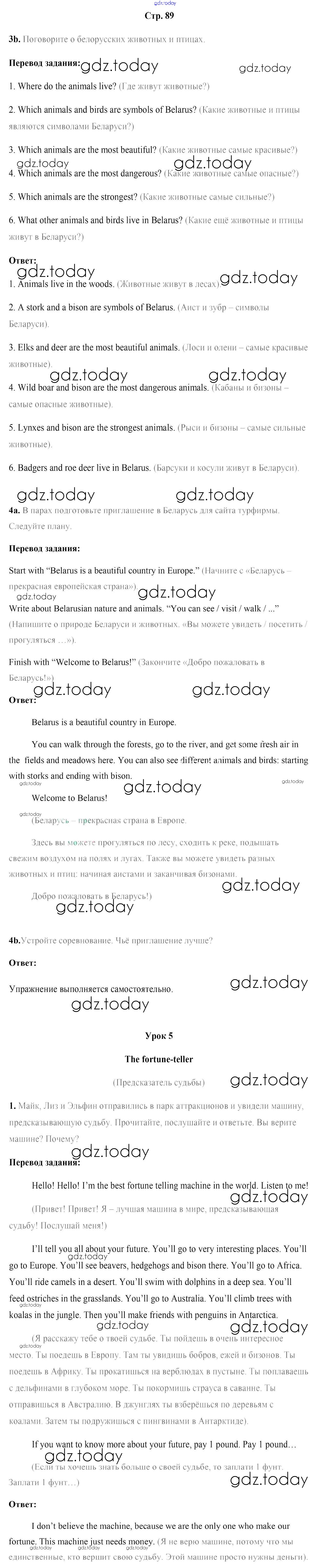 На страницах сайта gdz.today вы найдете учебный и вспомогательный материал, направленный на улучшения знаний школьной программы. ГДЗ - онлайн мир знаний Решение к части 2. Страницы 89 Учебнику по Английскому языку для 5 класса Лапицкая, Калишевич Народная асвета 2020