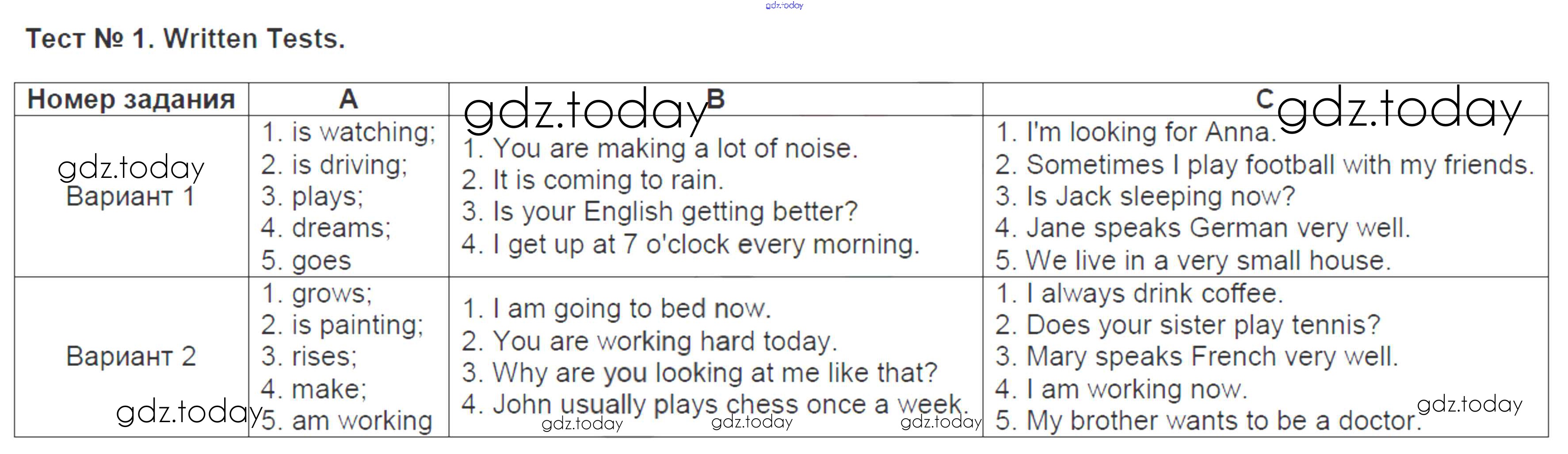 На страницах сайта gdz.today вы найдете учебный и вспомогательный материал, направленный на улучшения знаний школьной программы. ГДЗ - онлайн мир знаний Решение к Written Tests 1 Контрольно-измерительным материалам (КИМ) по Английскому языку для 5 класса Лысакова, Сахаров ВАКО 2017
