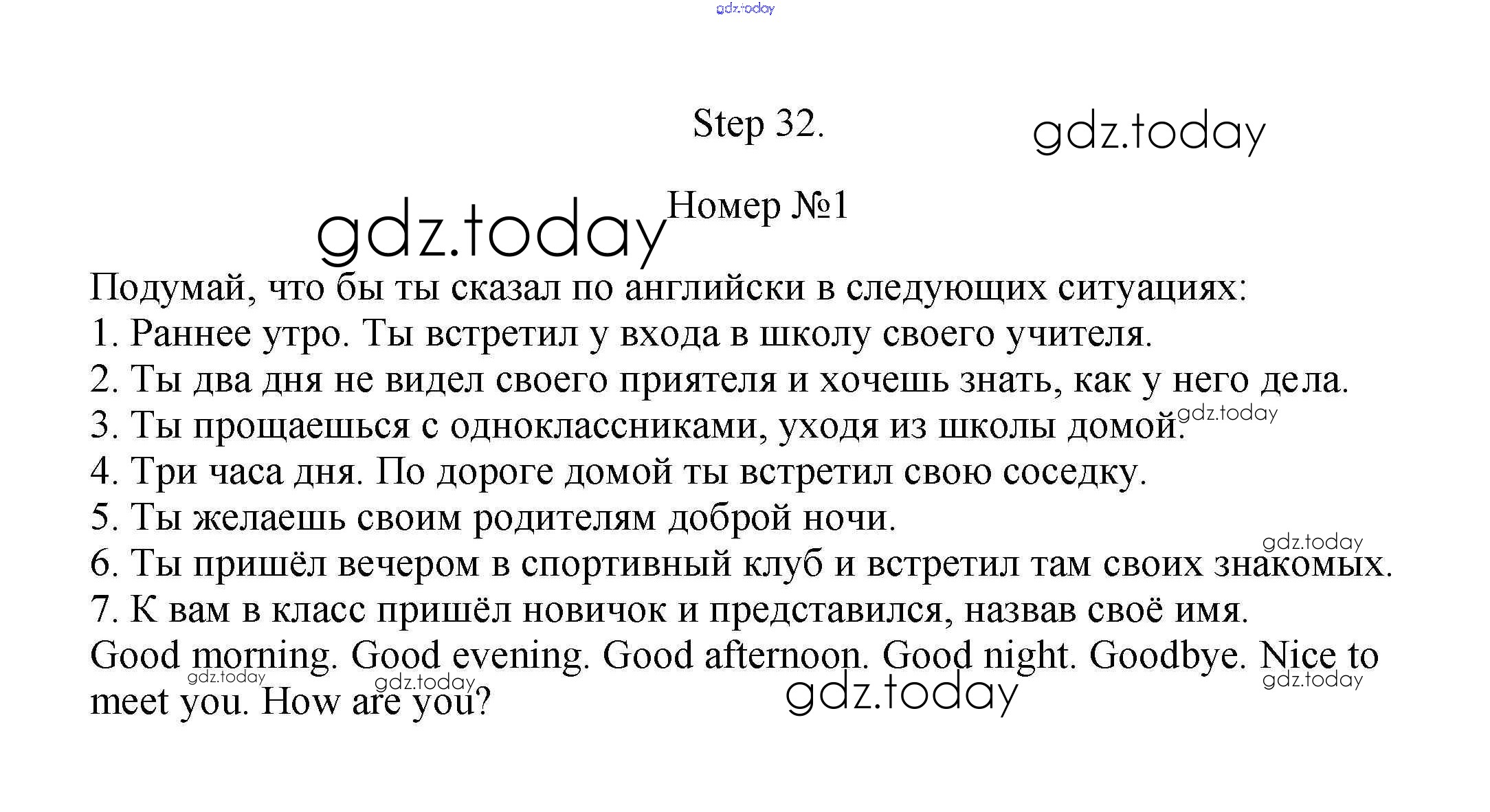 На страницах сайта gdz.today вы найдете учебный и вспомогательный материал, направленный на улучшения знаний школьной программы. ГДЗ - онлайн мир знаний Решение к Step 32 1 Учебнику по Английскому языку для 5 класса Афанасьева, Михеева Дрофа Новый курс 2017
