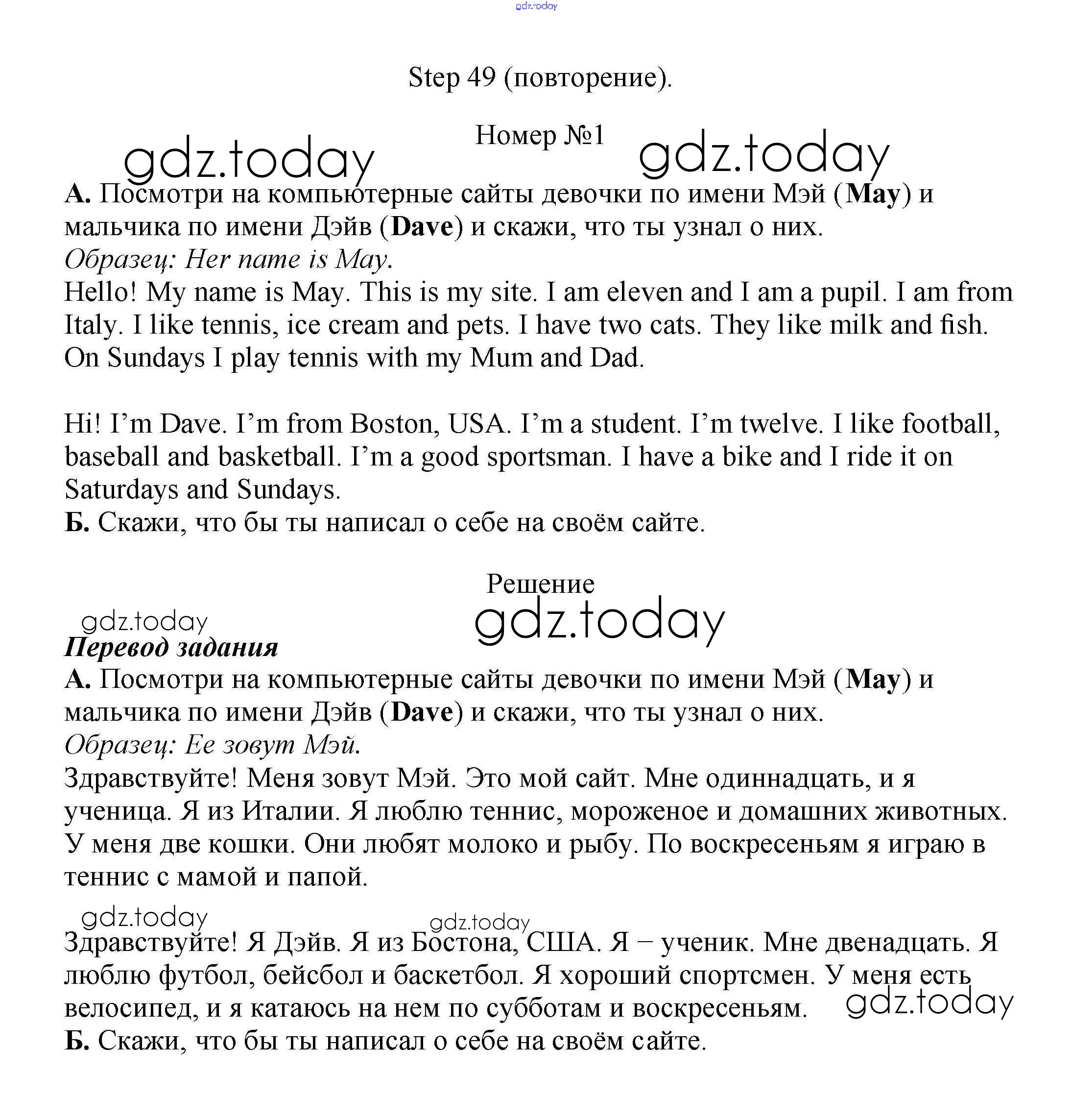 На страницах сайта gdz.today вы найдете учебный и вспомогательный материал, направленный на улучшения знаний школьной программы. ГДЗ - онлайн мир знаний Решение к Step 49 1 Учебнику по Английскому языку для 5 класса Афанасьева, Михеева Дрофа Новый курс 2017