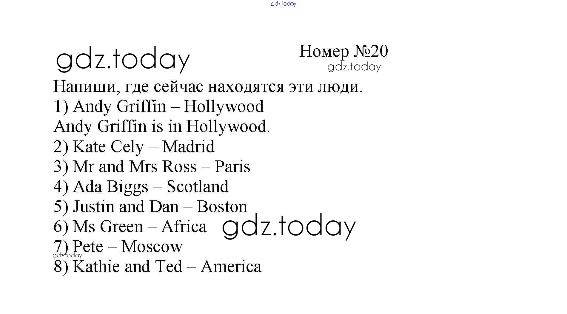 На страницах сайта gdz.today вы найдете учебный и вспомогательный материал, направленный на улучшения знаний школьной программы. ГДЗ - онлайн мир знаний Unit 4 (решение) 20 Рабочей тетради по Английскому языку для 5 класса Афанасьева, Михеева Дрофа Новый курс 2017