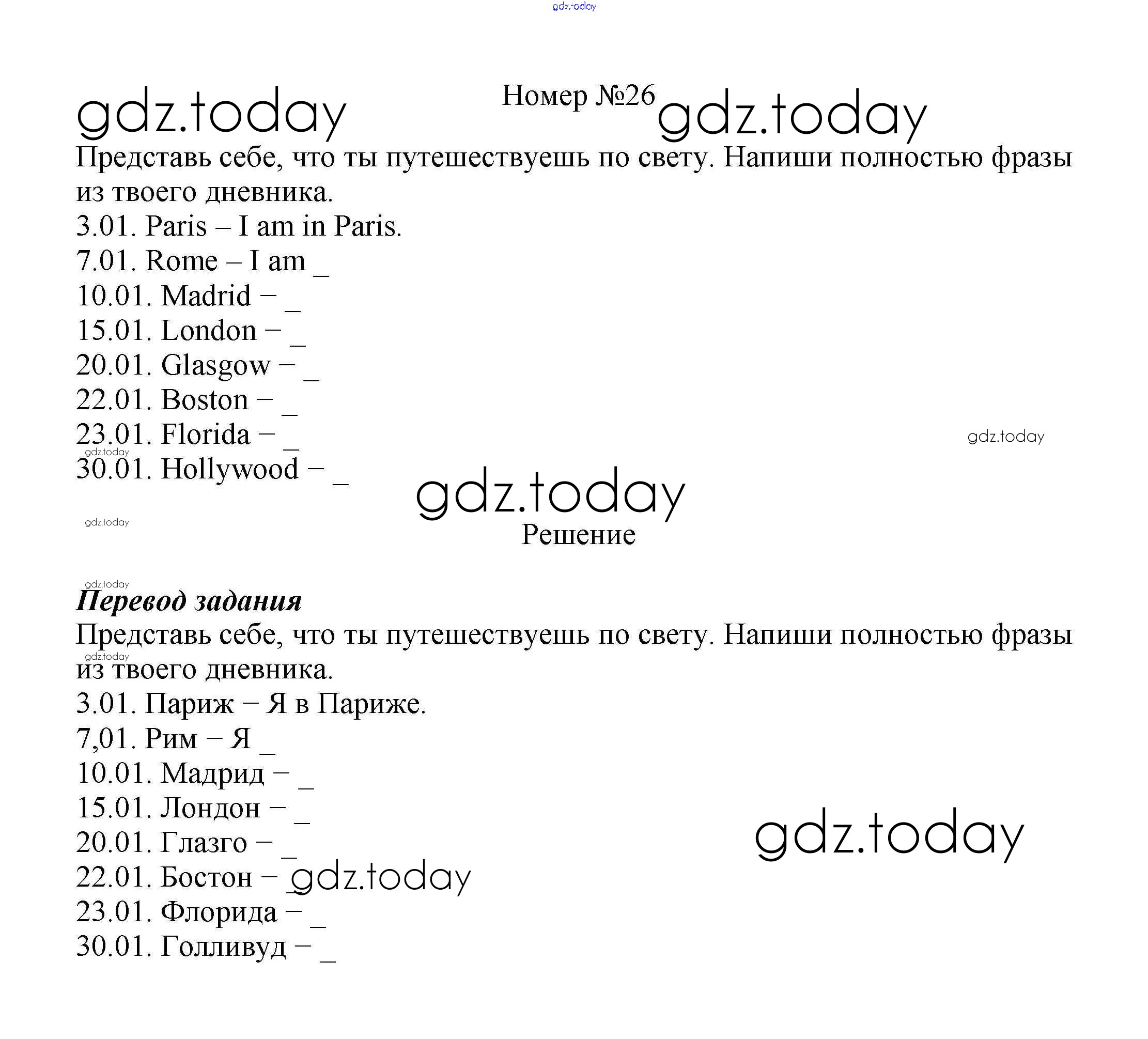 На страницах сайта gdz.today вы найдете учебный и вспомогательный материал, направленный на улучшения знаний школьной программы. ГДЗ - онлайн мир знаний Unit 4 (решение) 26 Рабочей тетради по Английскому языку для 5 класса Афанасьева, Михеева Дрофа Новый курс 2017