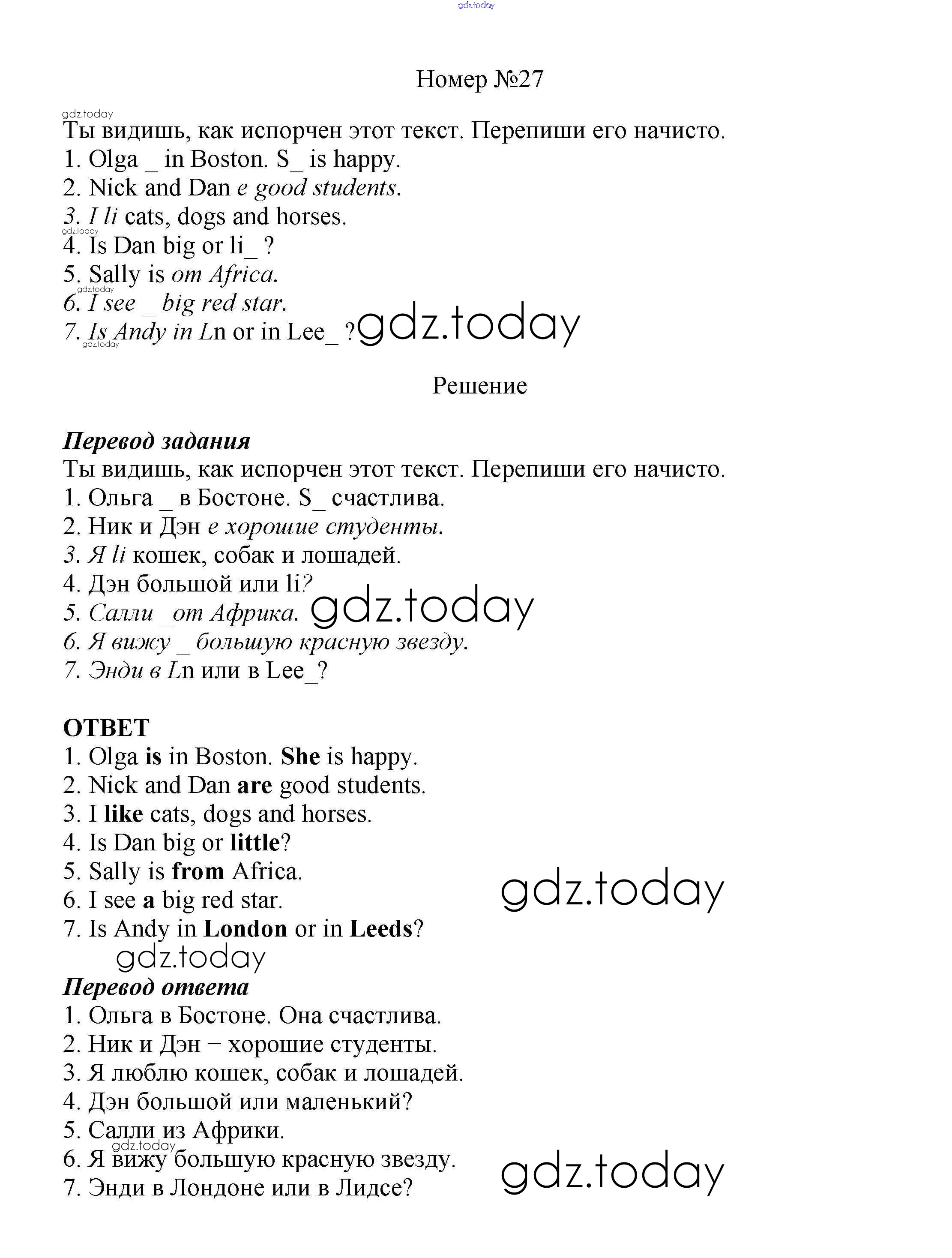 На страницах сайта gdz.today вы найдете учебный и вспомогательный материал, направленный на улучшения знаний школьной программы. ГДЗ - онлайн мир знаний Unit 4 (решение) 27 Рабочей тетради по Английскому языку для 5 класса Афанасьева, Михеева Дрофа Новый курс 2017