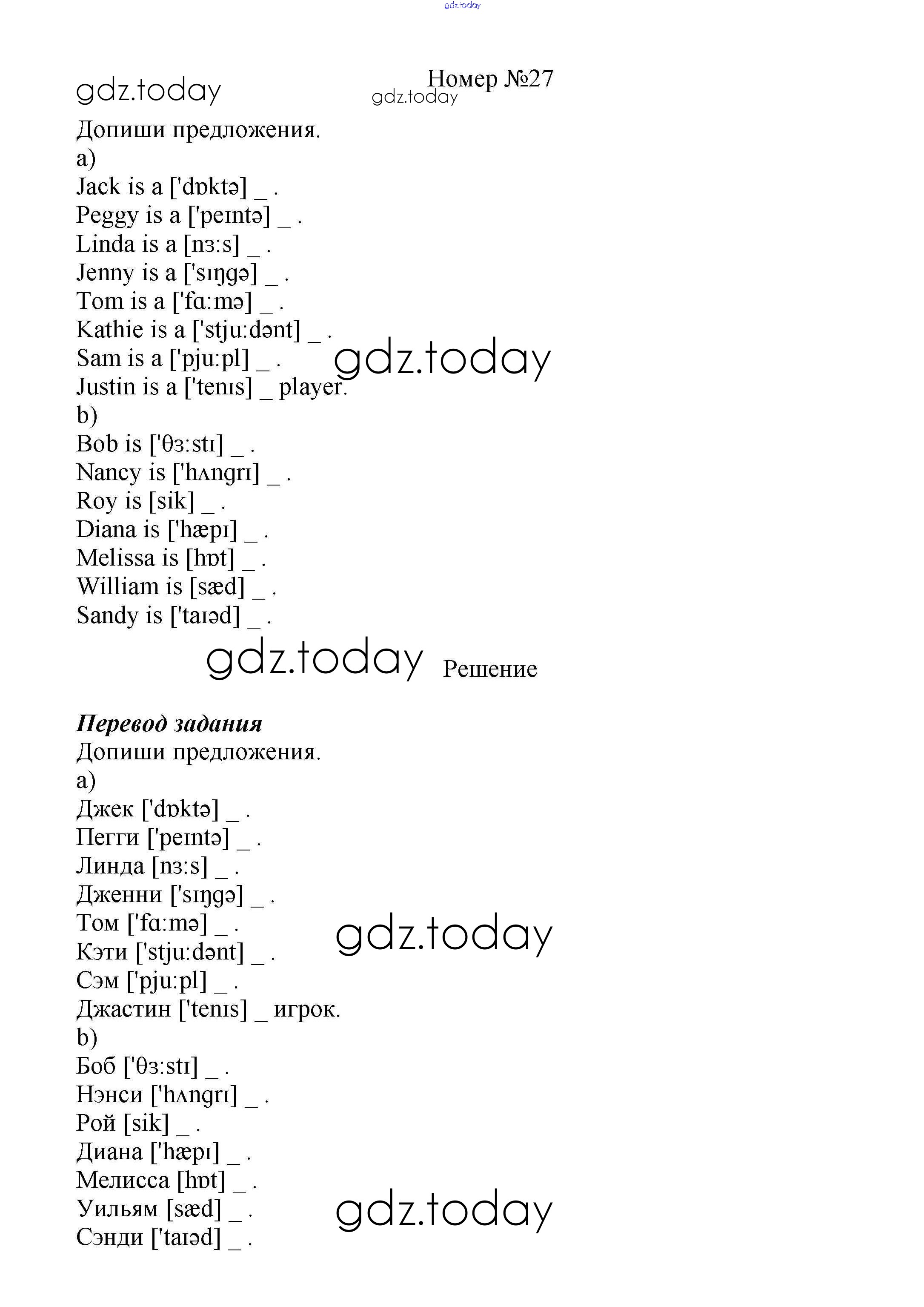 На страницах сайта gdz.today вы найдете учебный и вспомогательный материал, направленный на улучшения знаний школьной программы. ГДЗ - онлайн мир знаний Unit 8 (решение) 27 Рабочей тетради по Английскому языку для 5 класса Афанасьева, Михеева Дрофа Новый курс 2017