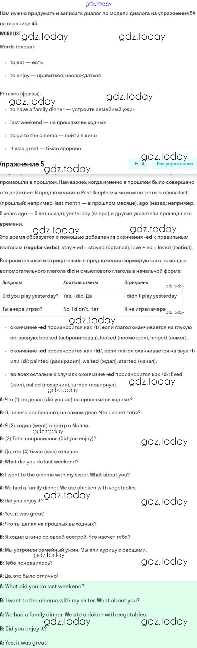 Ответы к Страницы (решение) 45 Рабочей тетради по Английскому языку для 5 класса Баранова, Дули Углубленный уровень Просвещение Starlight 2017