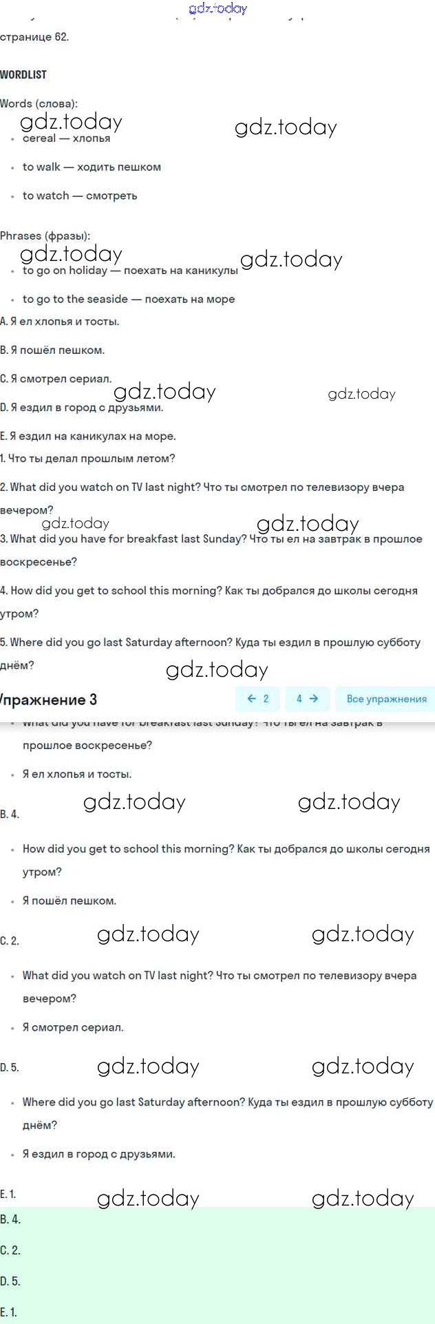 Ответы к Страницы (решение) 62 Рабочей тетради по Английскому языку для 5 класса Комарова, Ларионова Русское слово Инновационная школа 2022