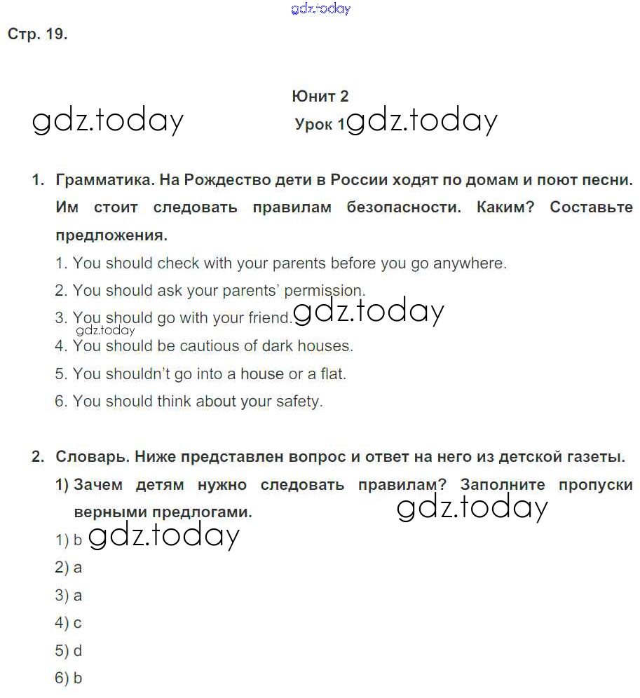 Ответы к Решение к Unit 2. Rules around us стр. 19 Рабочей тетради по Английскому языку для 5 класса Кузовлев, Лапа Просвещение Академический школьный учебник 2013