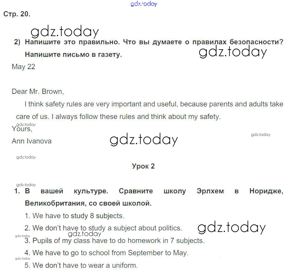 На страницах сайта gdz.today вы найдете учебный и вспомогательный материал, направленный на улучшения знаний школьной программы. ГДЗ - онлайн мир знаний Решение к Unit 2. Rules around us стр. 20 Рабочей тетради по Английскому языку для 5 класса Кузовлев, Лапа Просвещение Академический школьный учебник 2013