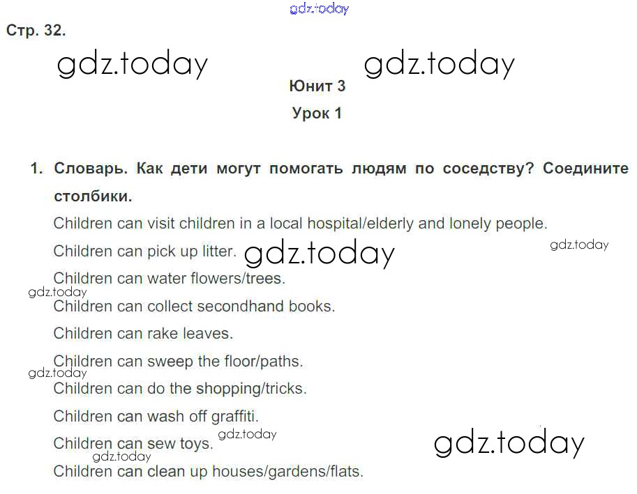 Ответы к Решение к Unit 3. We must help people around стр. 32 Рабочей тетради по Английскому языку для 5 класса Кузовлев, Лапа Просвещение Академический школьный учебник 2013