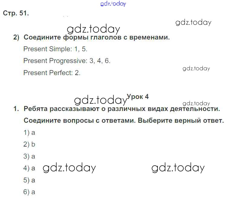 Ответы к Решение к Unit 4. Every day and at weekends стр. 51 Рабочей тетради по Английскому языку для 5 класса Кузовлев, Лапа Просвещение Академический школьный учебник 2013