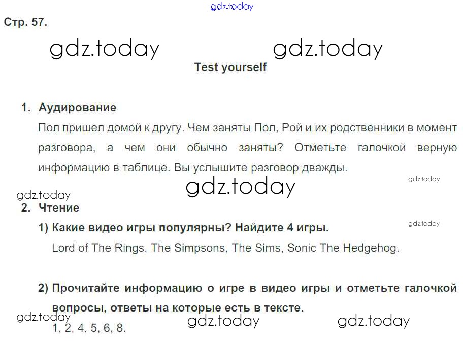Ответы к Решение к Unit 4. Every day and at weekends стр. 57 Рабочей тетради по Английскому языку для 5 класса Кузовлев, Лапа Просвещение Академический школьный учебник 2013