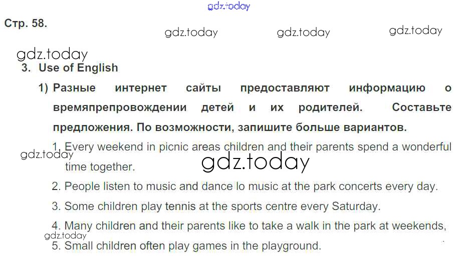 На страницах сайта gdz.today вы найдете учебный и вспомогательный материал, направленный на улучшения знаний школьной программы. ГДЗ - онлайн мир знаний Решение к Unit 4. Every day and at weekends стр. 58 Рабочей тетради по Английскому языку для 5 класса Кузовлев, Лапа Просвещение Академический школьный учебник 2013