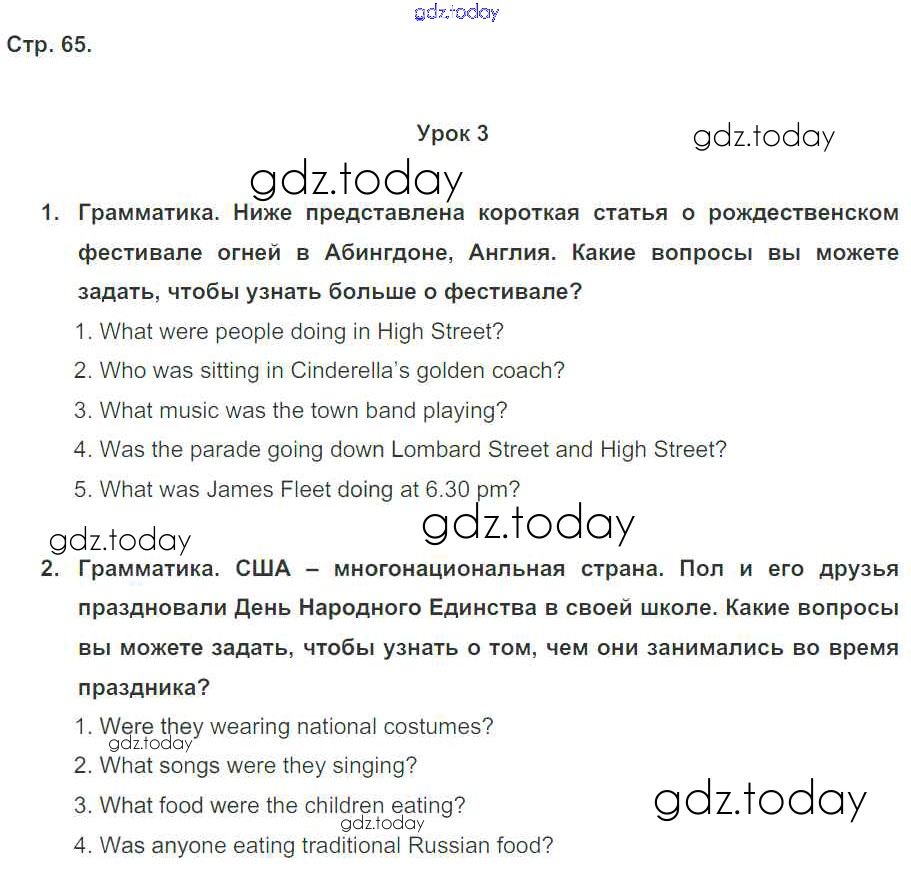 Ответы к Решение к Unit 5. My favorite celebrations стр. 65 Рабочей тетради по Английскому языку для 5 класса Кузовлев, Лапа Просвещение Академический школьный учебник 2013