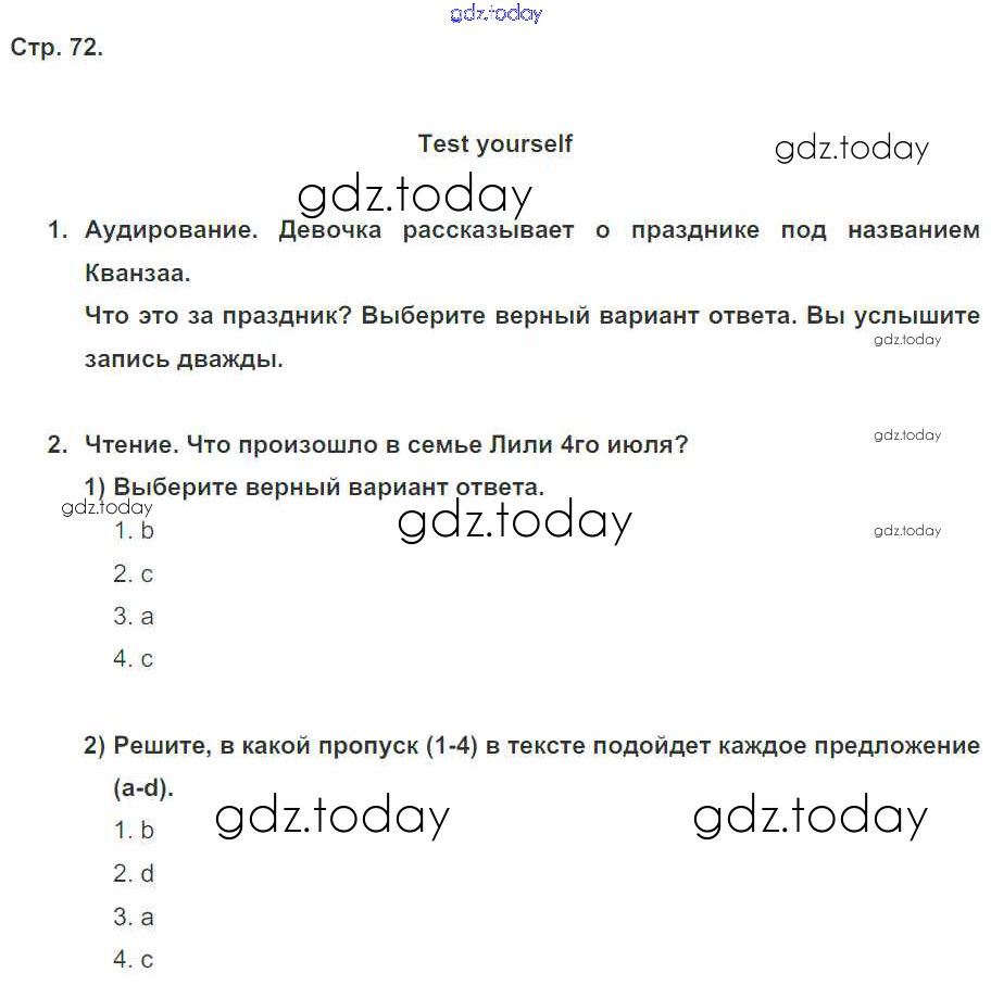 Ответы к Решение к Unit 5. My favorite celebrations стр. 72 Рабочей тетради по Английскому языку для 5 класса Кузовлев, Лапа Просвещение Академический школьный учебник 2013