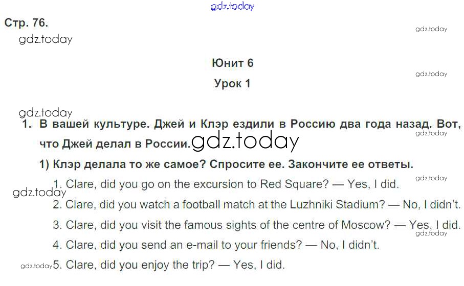 Ответы к Решение к Unit 6. We've had a nice trip to England стр. 76 Рабочей тетради по Английскому языку для 5 класса Кузовлев, Лапа Просвещение Академический школьный учебник 2013