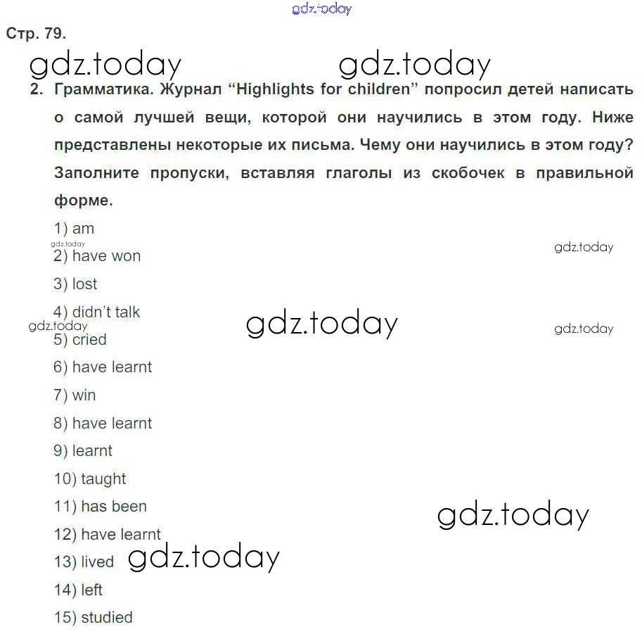 На страницах сайта gdz.today вы найдете учебный и вспомогательный материал, направленный на улучшения знаний школьной программы. ГДЗ - онлайн мир знаний Решение к Unit 6. We've had a nice trip to England стр. 79 Рабочей тетради по Английскому языку для 5 класса Кузовлев, Лапа Просвещение Академический школьный учебник 2013