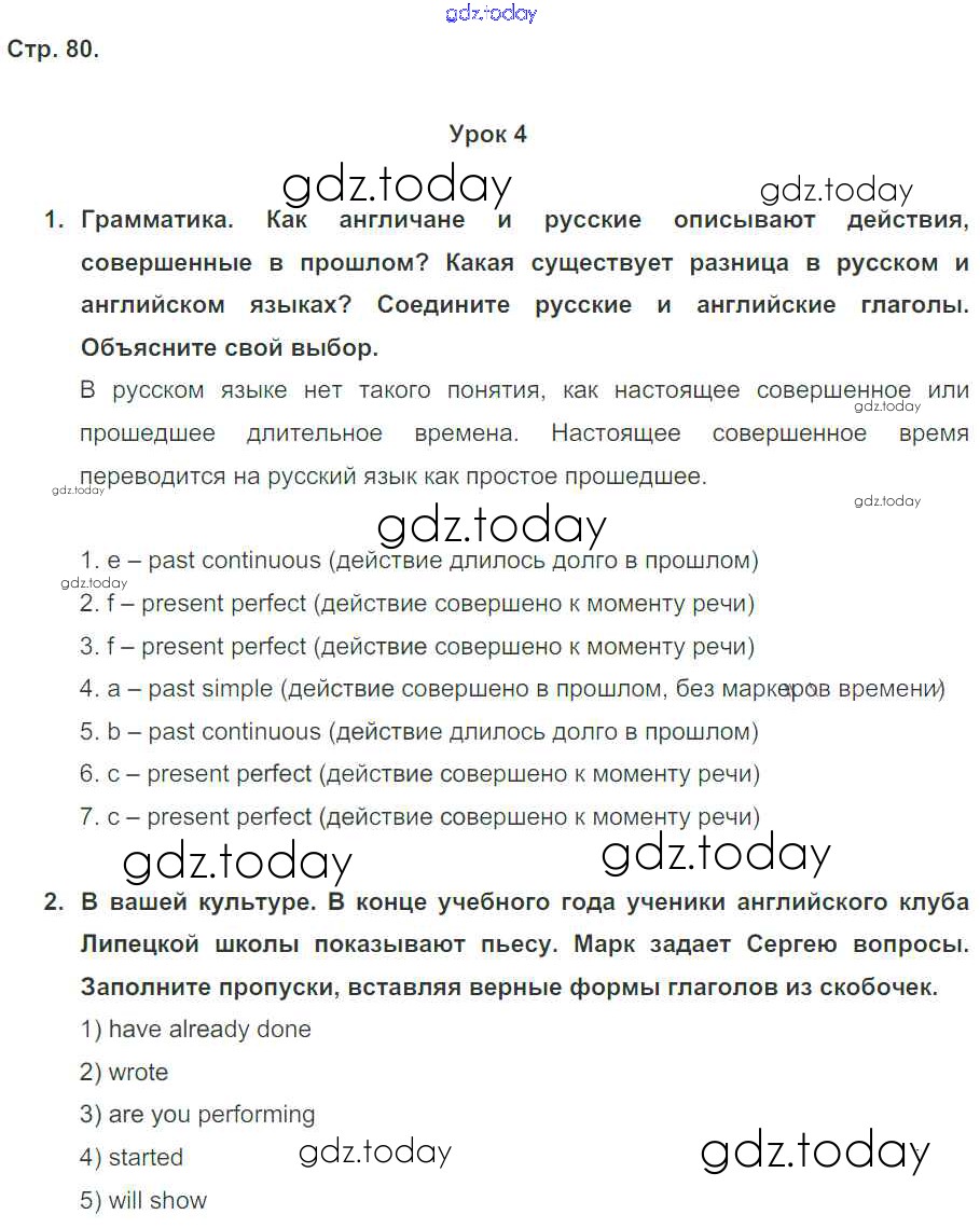 Ответы к Решение к Unit 6. We've had a nice trip to England стр. 80 Рабочей тетради по Английскому языку для 5 класса Кузовлев, Лапа Просвещение Академический школьный учебник 2013