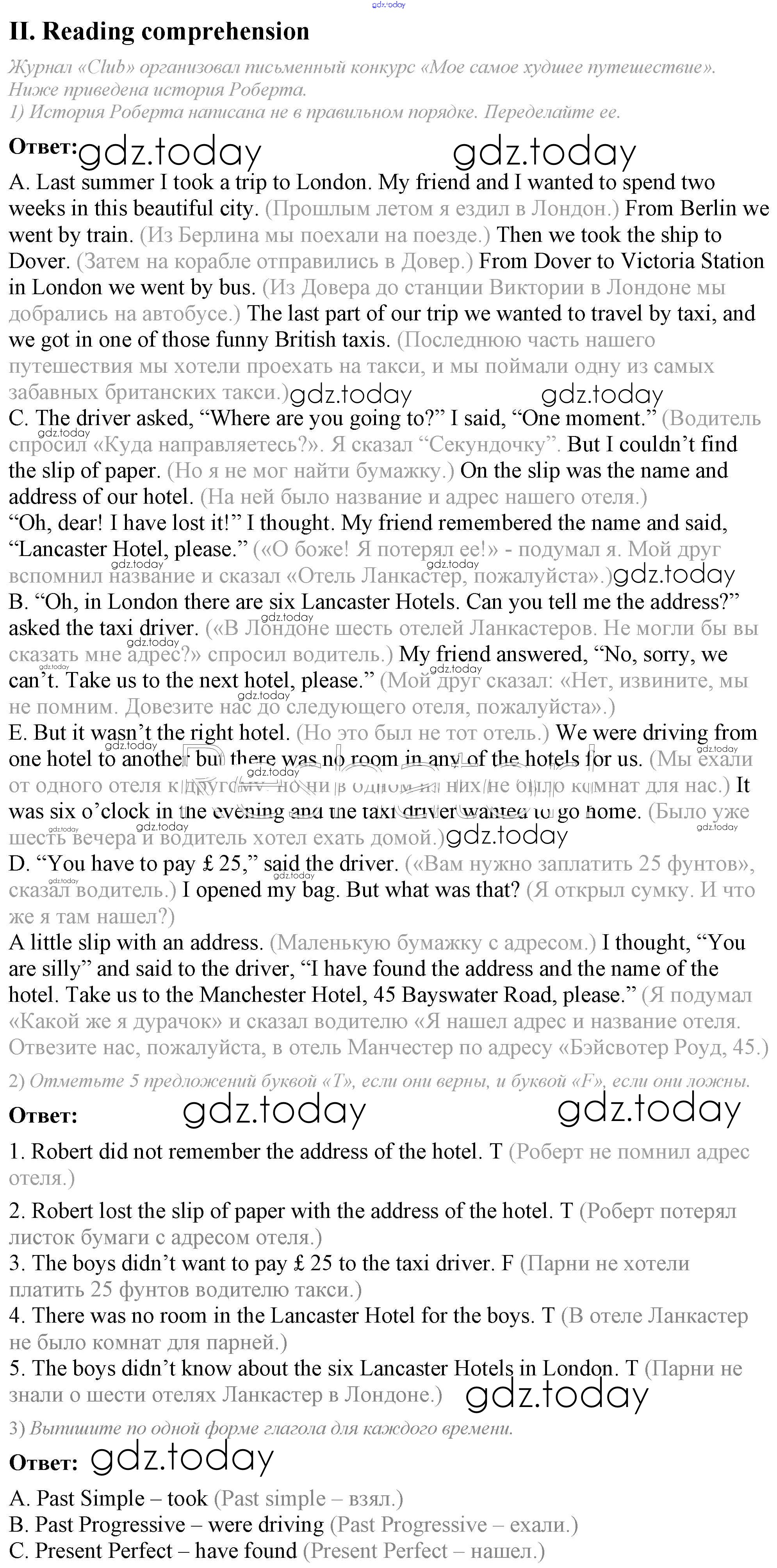 Ответы к Решение к Unit 6. We've had a nice trip to England стр. 86 Рабочей тетради по Английскому языку для 5 класса Кузовлев, Лапа Просвещение Академический школьный учебник 2013