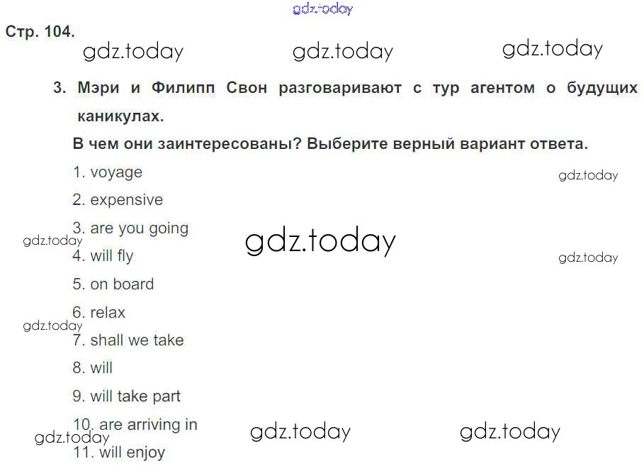 Ответы к Решение к Unit 7. My future holiday стр. 104 Рабочей тетради по Английскому языку для 5 класса Кузовлев, Лапа Просвещение Академический школьный учебник 2013