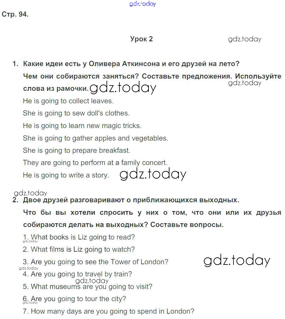 На страницах сайта gdz.today вы найдете учебный и вспомогательный материал, направленный на улучшения знаний школьной программы. ГДЗ - онлайн мир знаний Решение к Unit 7. My future holiday стр. 94 Рабочей тетради по Английскому языку для 5 класса Кузовлев, Лапа Просвещение Академический школьный учебник 2013