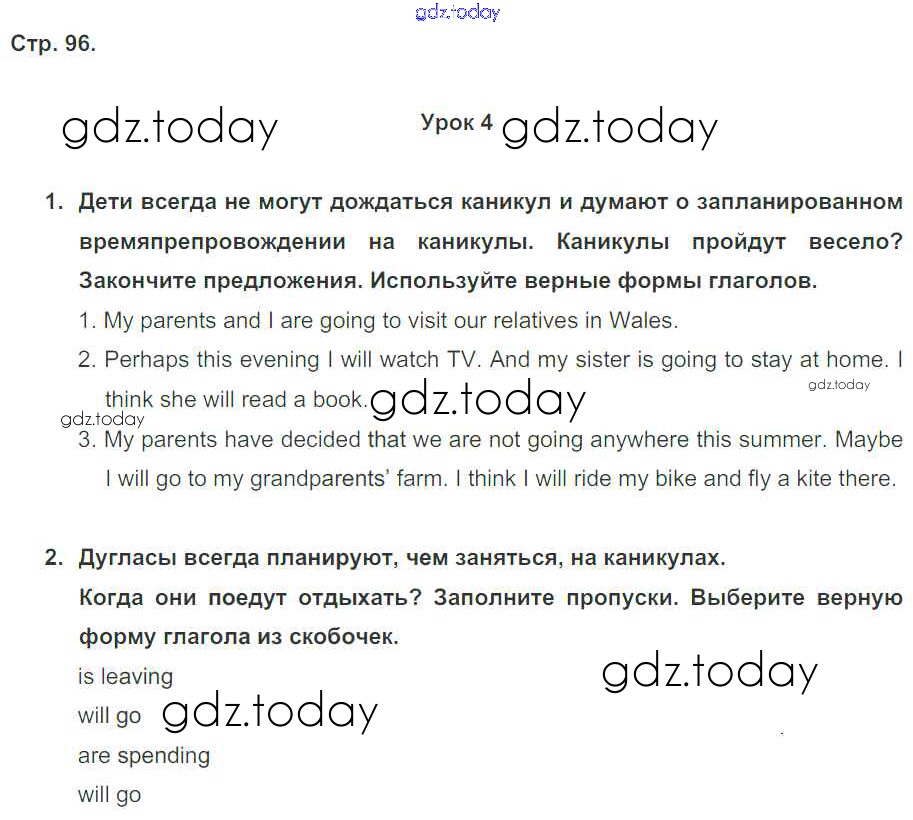Ответы к Решение к Unit 7. My future holiday стр. 96 Рабочей тетради по Английскому языку для 5 класса Кузовлев, Лапа Просвещение Академический школьный учебник 2013