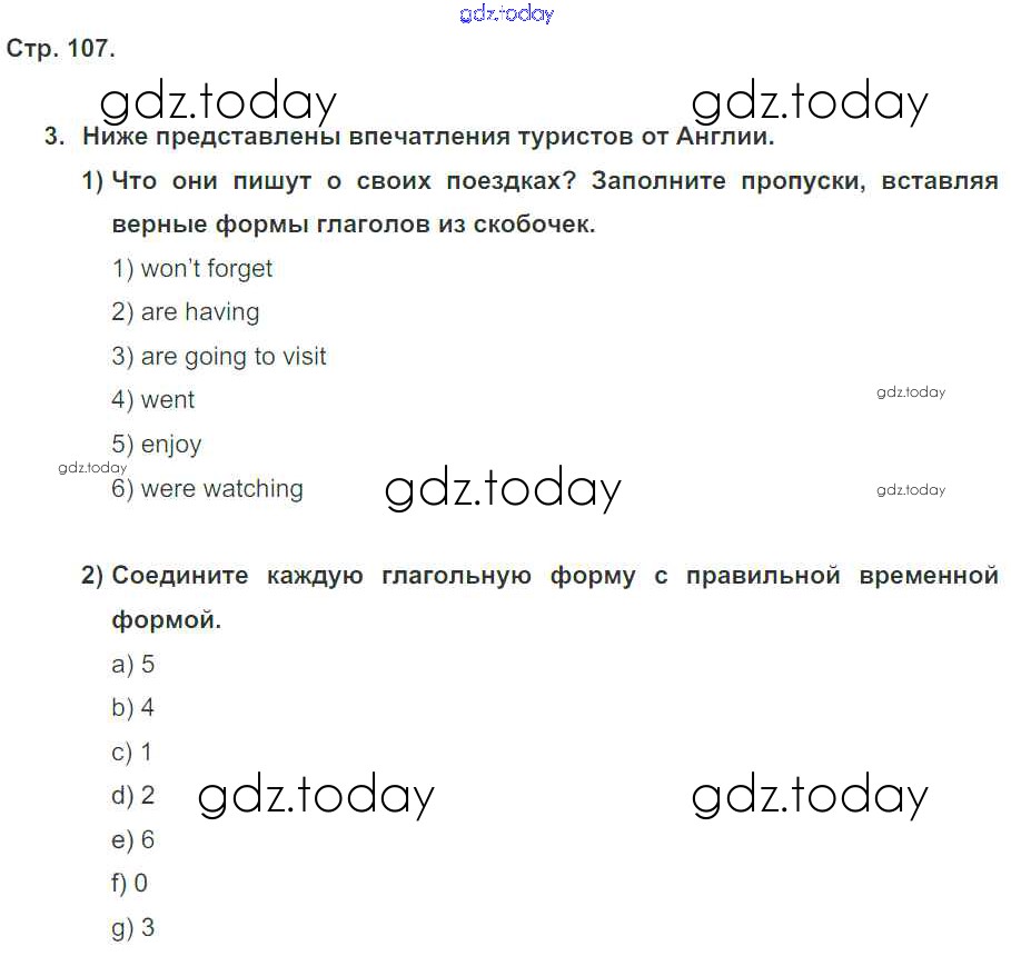 На страницах сайта gdz.today вы найдете учебный и вспомогательный материал, направленный на улучшения знаний школьной программы. ГДЗ - онлайн мир знаний Решение к Unit 8. My best impressions стр. 107 Рабочей тетради по Английскому языку для 5 класса Кузовлев, Лапа Просвещение Академический школьный учебник 2013