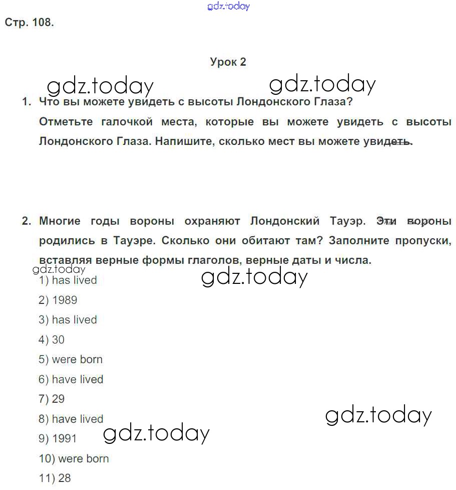 На страницах сайта gdz.today вы найдете учебный и вспомогательный материал, направленный на улучшения знаний школьной программы. ГДЗ - онлайн мир знаний Решение к Unit 8. My best impressions стр. 108 Рабочей тетради по Английскому языку для 5 класса Кузовлев, Лапа Просвещение Академический школьный учебник 2013
