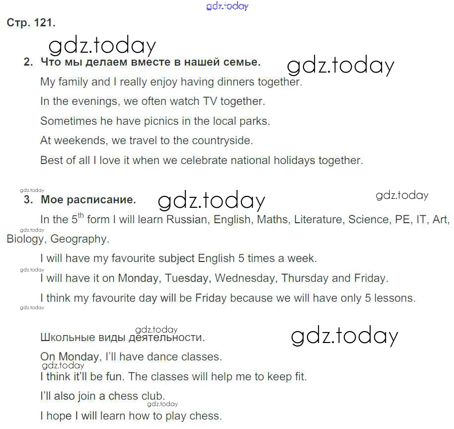 Ответы к Решение к Unit 8. My best impressions стр. 121 Рабочей тетради по Английскому языку для 5 класса Кузовлев, Лапа Просвещение Академический школьный учебник 2013