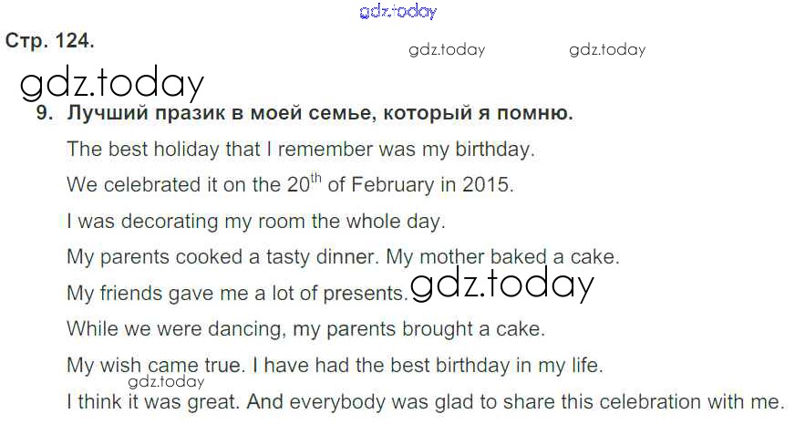 Ответы к Решение к Unit 8. My best impressions стр. 124 Рабочей тетради по Английскому языку для 5 класса Кузовлев, Лапа Просвещение Академический школьный учебник 2013