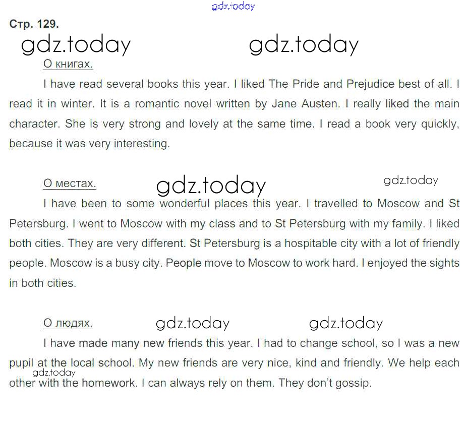 Ответы к Решение к Unit 8. My best impressions стр. 129 Рабочей тетради по Английскому языку для 5 класса Кузовлев, Лапа Просвещение Академический школьный учебник 2013