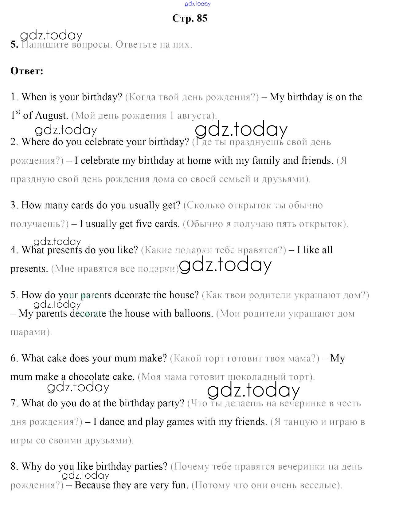 На страницах сайта gdz.today вы найдете учебный и вспомогательный материал, направленный на улучшения знаний школьной программы. ГДЗ - онлайн мир знаний Решение к части 1. Страницы 85 Рабочей тетради по Английскому языку для 5 класса Лапицкая, Севрюкова Аверсэв 2016