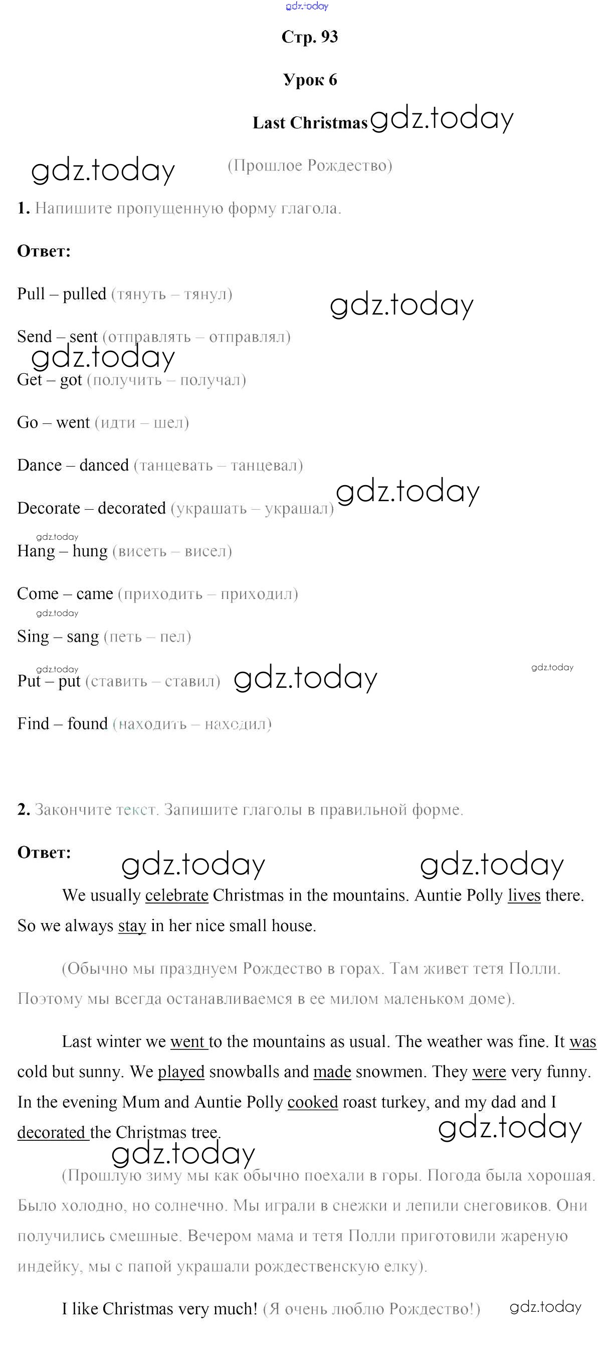 На страницах сайта gdz.today вы найдете учебный и вспомогательный материал, направленный на улучшения знаний школьной программы. ГДЗ - онлайн мир знаний Решение к части 1. Страницы 93 Рабочей тетради по Английскому языку для 5 класса Лапицкая, Севрюкова Аверсэв 2016